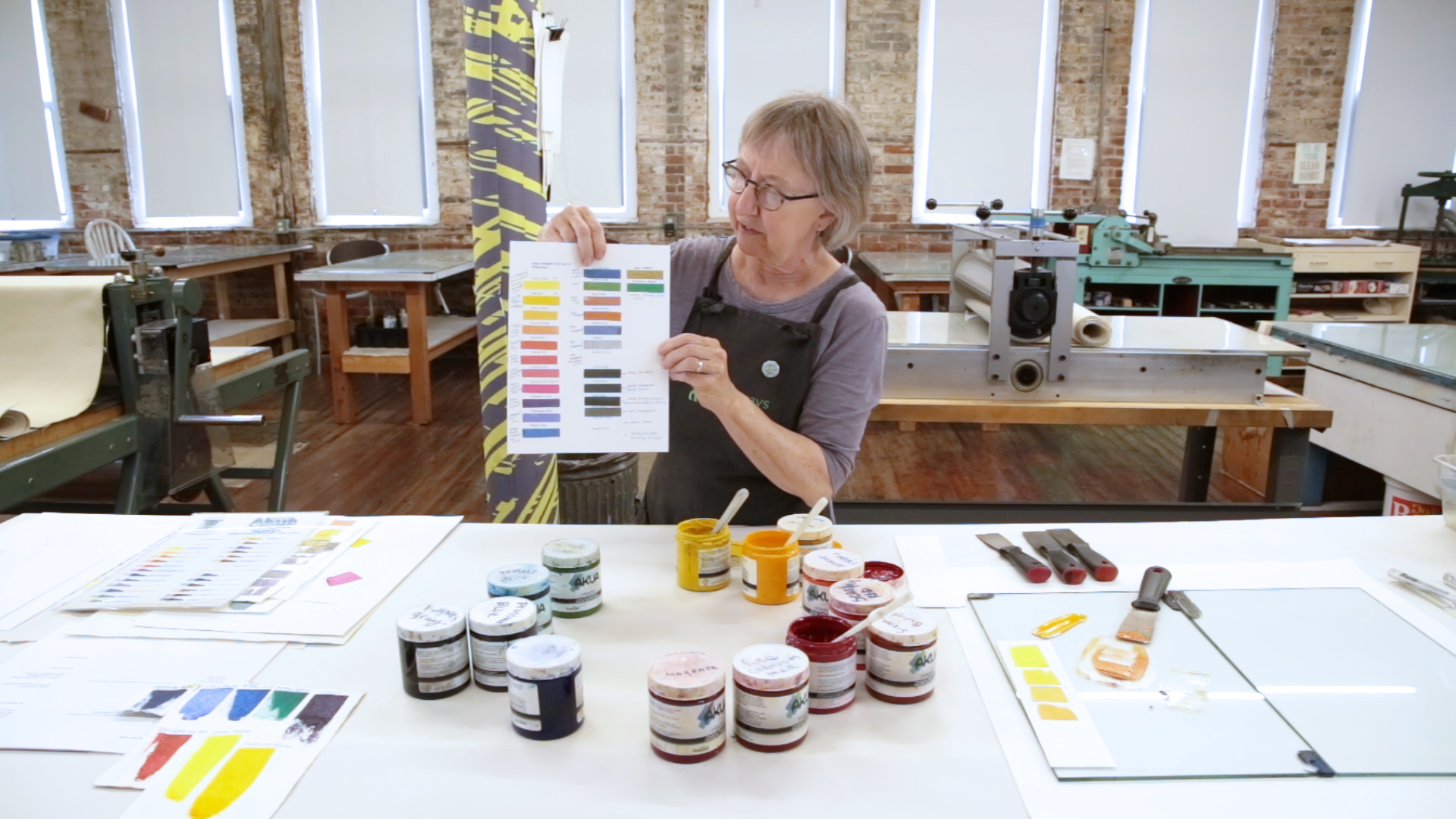 Joyce discusses the unique properties of Akua Intaglio inks and modifiers and leads you through a color mixing exercise to learn about the Akua color system.