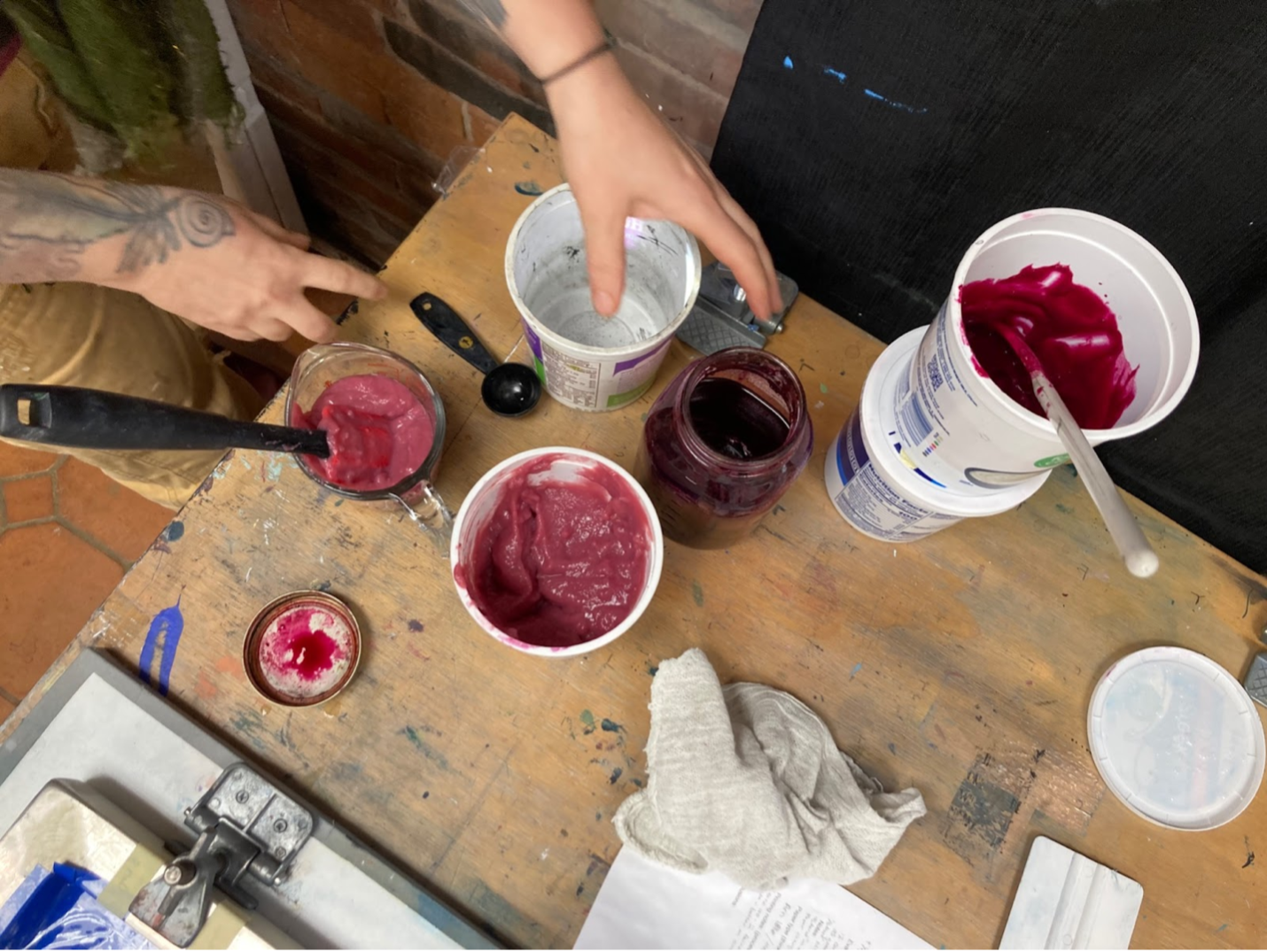 This research was conducted to create non-toxic screen printing inks made from plant based dyes. Initial experiments established a workable