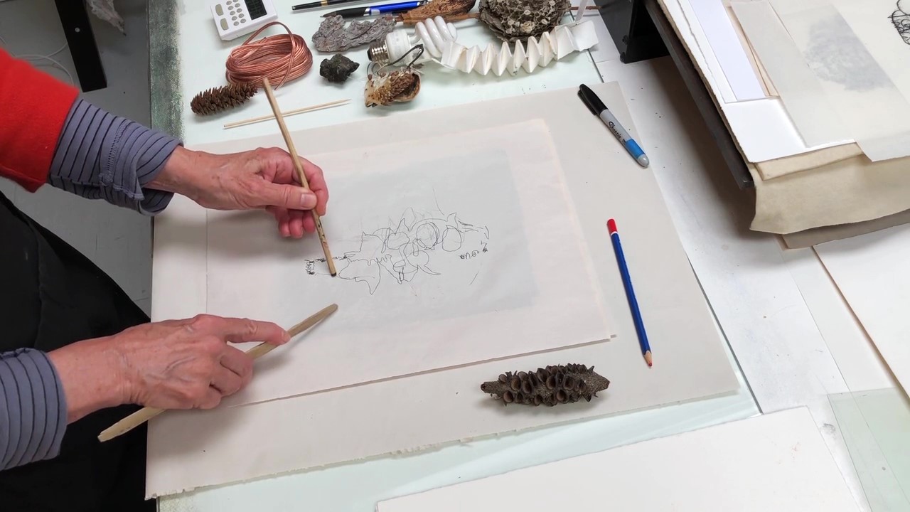 This tutorial is like a yoga class for mark making. Play and improvise in a variety of monotype techniques with the addition of repeatable images on incised PETG drypoint plates. Beginning with timed warm-up prompts,