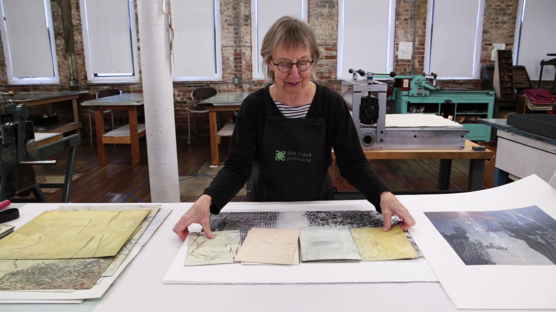 This tutorial is an introduction to working with Sintra plates, a PVC board that is very versatile. You can carve them with wood or linoleum tools and/or incise them with drypoint tools. The plates can be filled with lively combinations of carved imagery and incised lines that translate the texture and tones of a drawing tool. The imagery in this repeatable plate could be made into a small edition of prints, but can also be fun to work with as a starting point for one-of-a-kind prints. Through the use of colored inks and multi-plate monotype layers and stencils, these plates can yield a beautiful monoprint series.