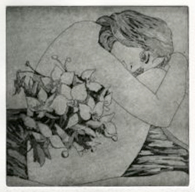 This technique uses sandpaper to create a smooth even aquatint on a copper plate grounded with BIG (Baldwin Intaglio Ground). The grounded plate is run through an etching press with 400 grit sandpaper to create an impression. which is then etched in a Ferric Chloride bath.